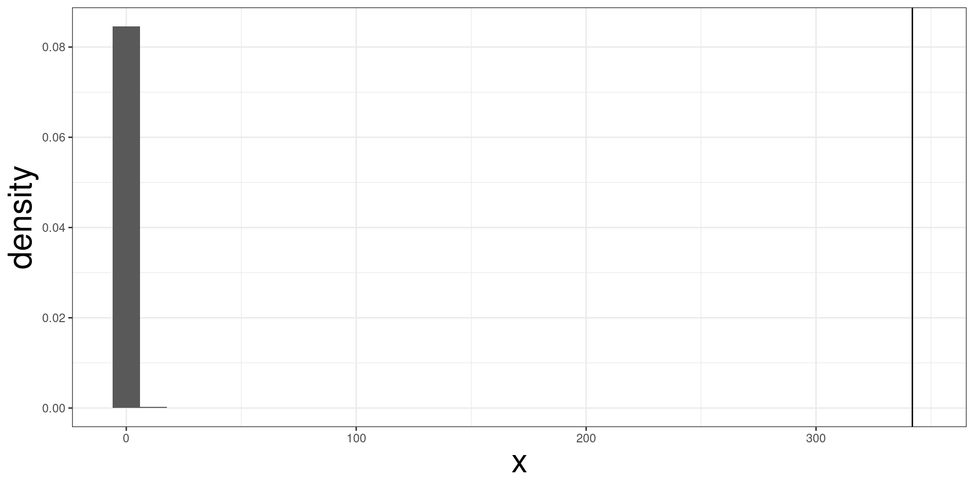 geom_vline(xintercept = f_stat)#> [1] 9.999e-05
