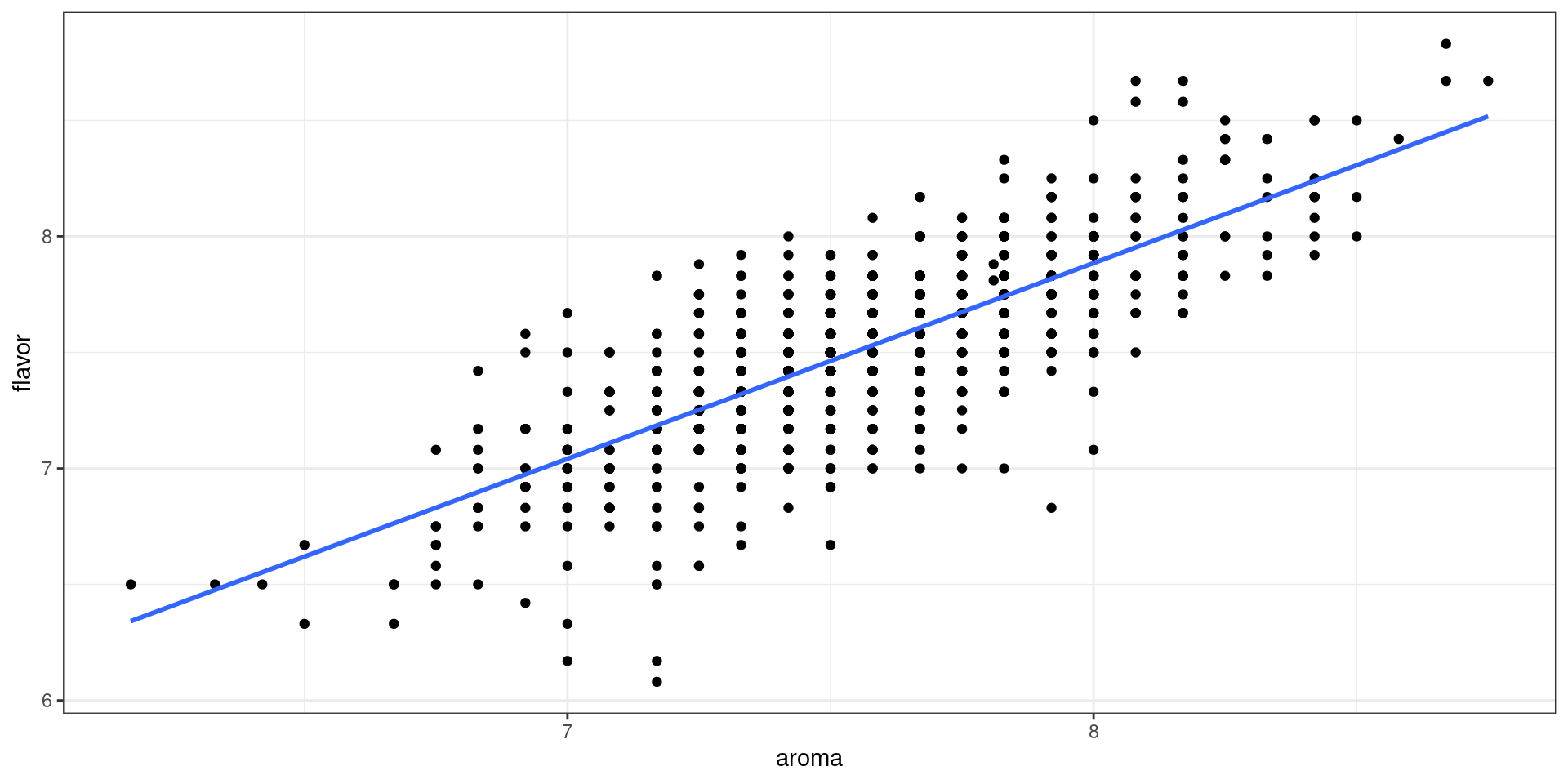 lm(flavor ~ aroma, data = _) |>